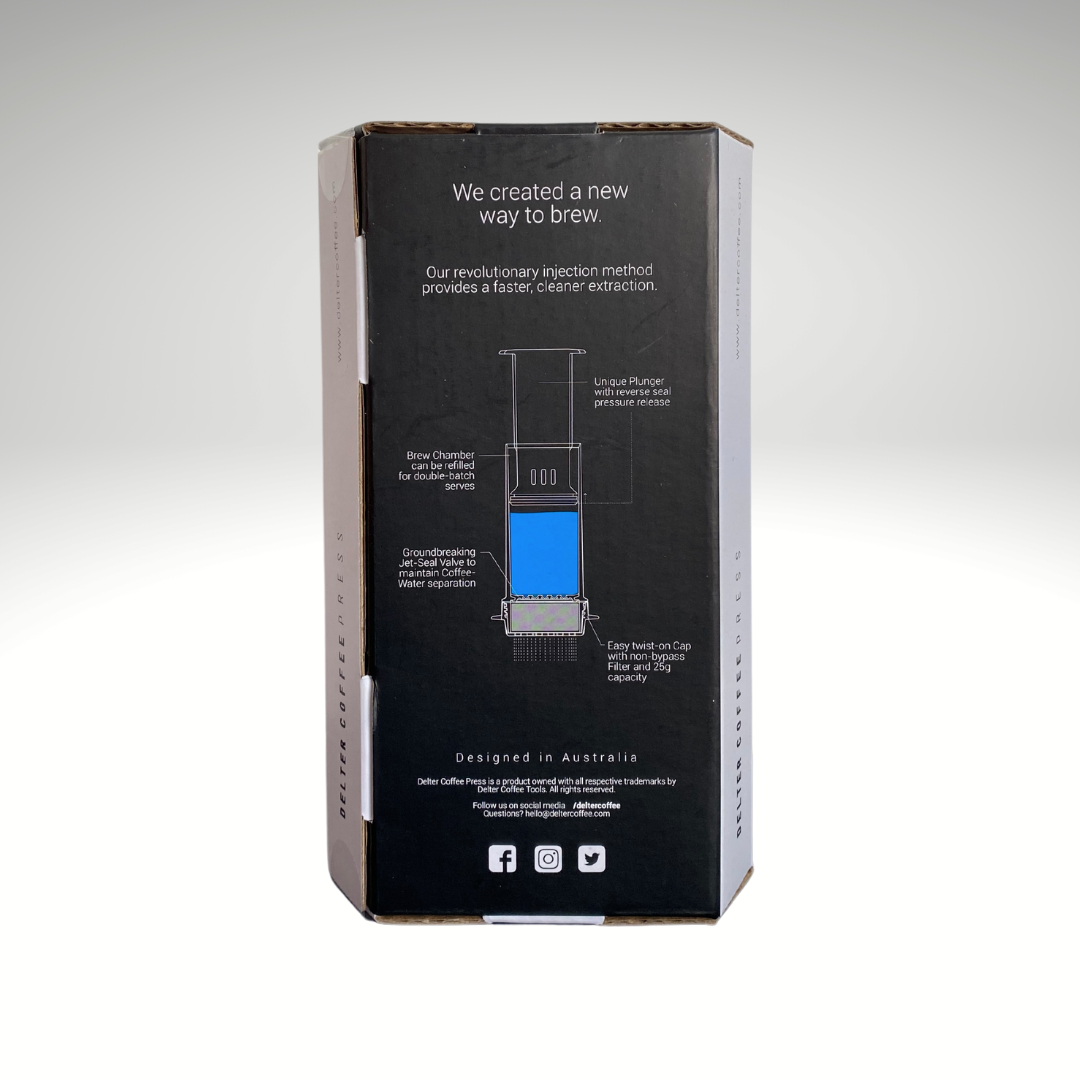 Delter Coffee Press is the new way to brew. The revolutionary injection method provides a faster, cleaner extraction.