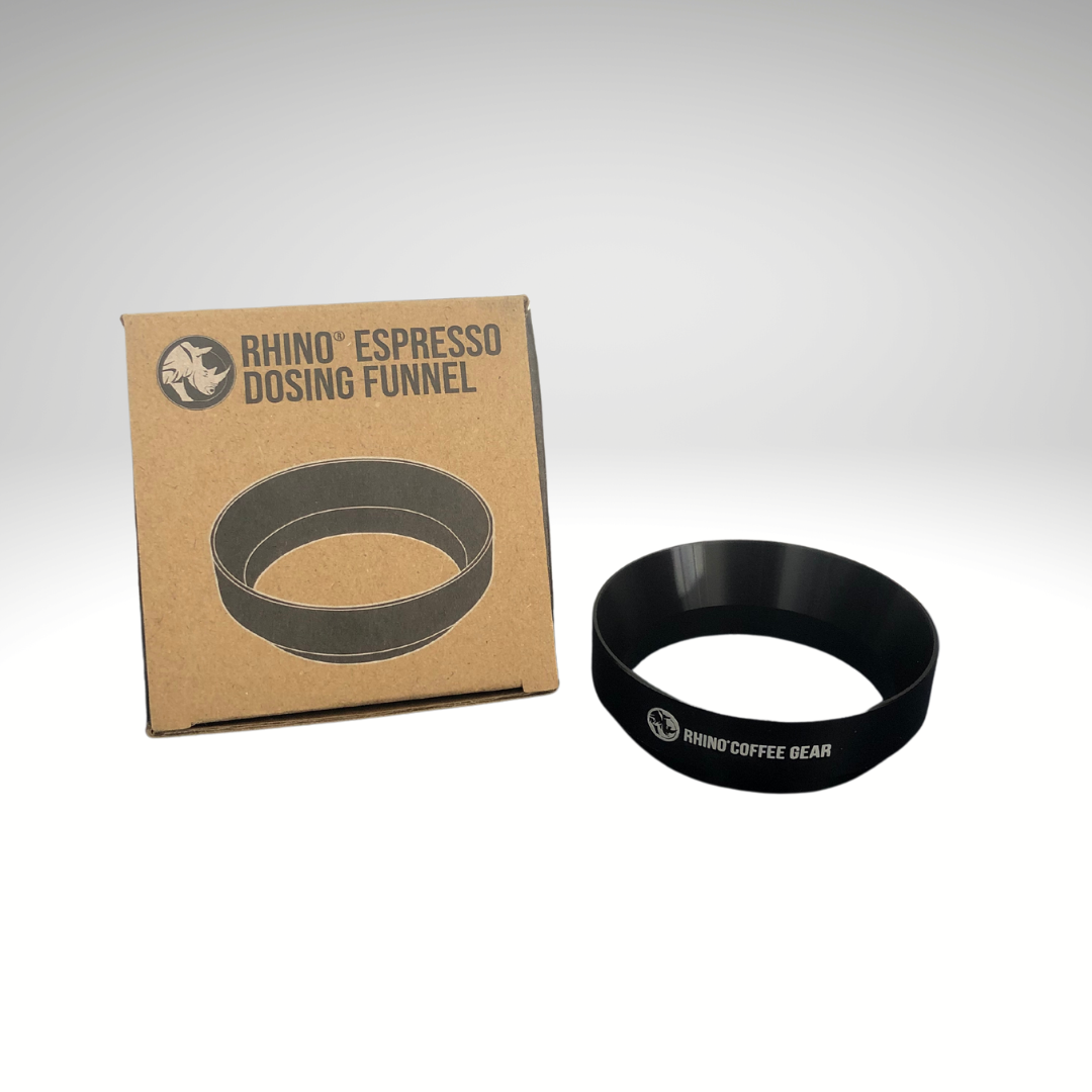 The Rhino Dosing funnel improves workflow and reduces waste and mess when transferring coffee grinds into your portafilter.