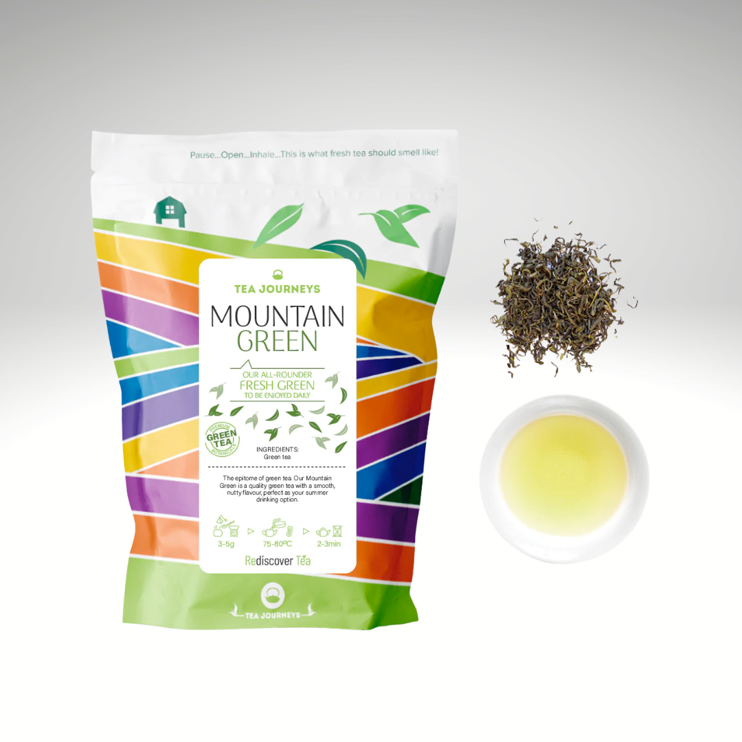 Tea Journeys, Mountain Green is a quality green tea with a smooth, nutty flavour, perfect as a summer drinking option.