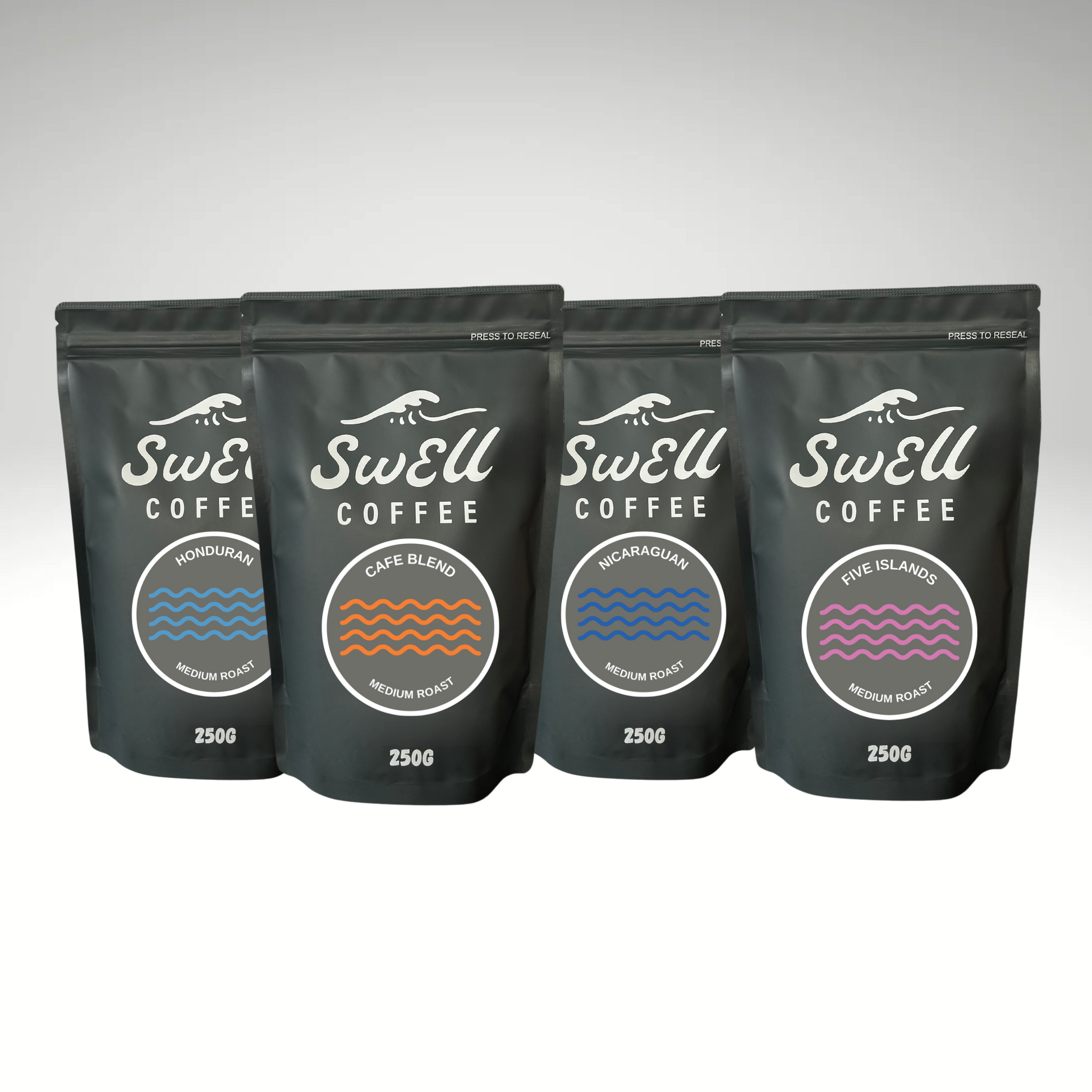 The Swell Coffee Sample Pack is the perfect way to explore the range. Whether you’re new to Swell Coffee or just want to mix things up, this pack includes 4 x 250g bags of our most-loved coffees.